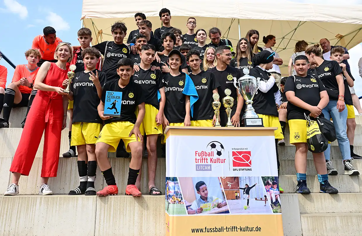 Karin Plötz, Director of LitCam gGmbH, which has been implementing the integrative education program since 2007, also drew a positive conclusion: “This year’s final tournament was once again the absolute highlight of the “Fußball trifft Kultur” program year. The children love showing what they can do by playing soccer. And they experience how important team spirit, fairness and respect are. They are proud to be part of such a big tournament. It’s an unforgettable experience for all the kids.”