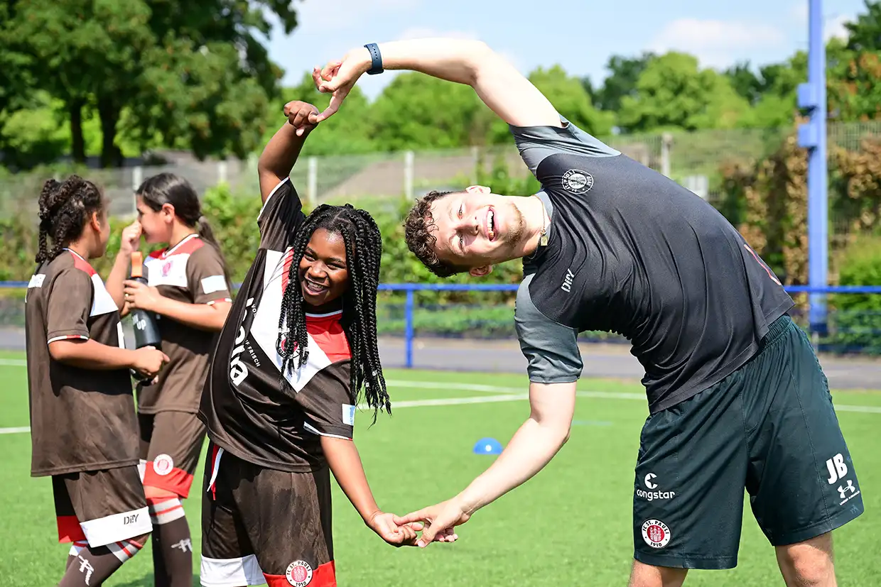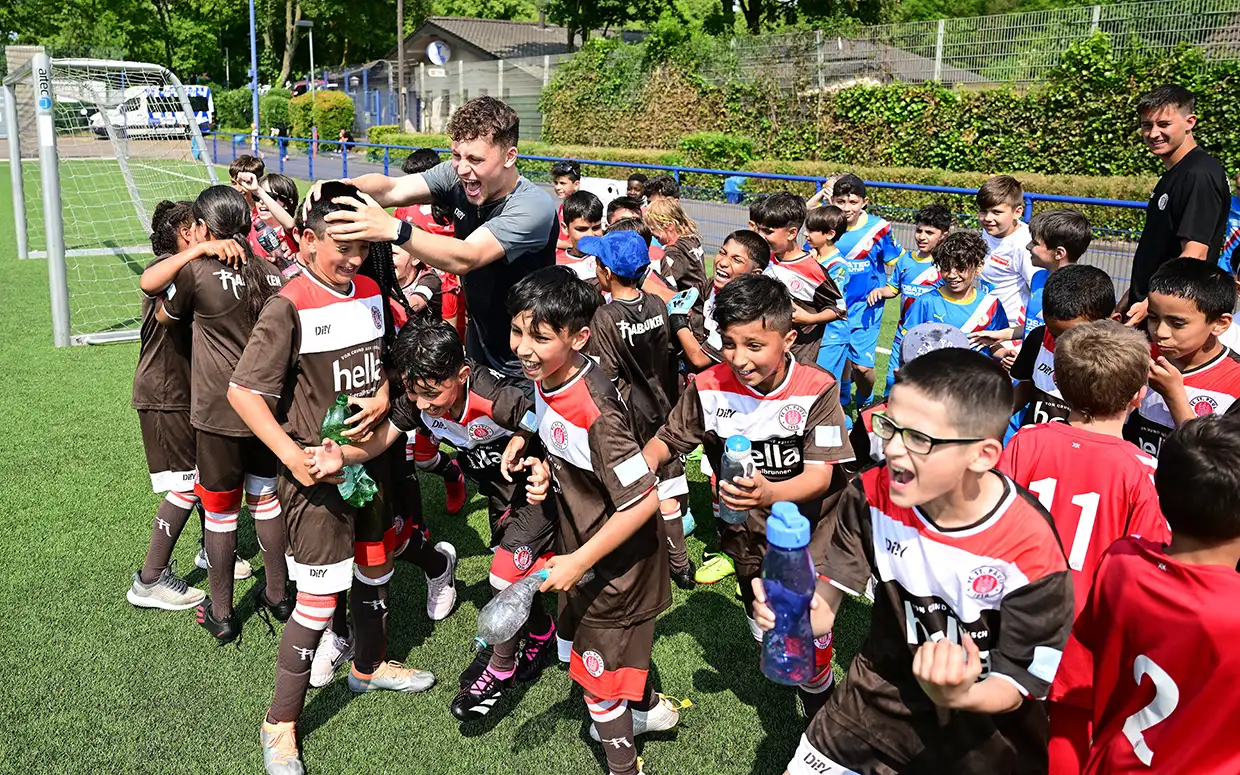 The final tournament in Darmstadt is also representative of the integrative nature of the educational program. United by the motivating power of soccer, children from a wide range of countries came together for a big soccer festival in which they were able to represent the colors of their respective partner clubs. The participants not only demonstrated the progress they have made in soccer over the past year, but also experienced solidarity, fair play and teamwork at first hand. The groups from the Grundschule an der Glinder Au (U10) and Herbert-Grillo-Gesamtschule (U14) were particularly pleased to win on behalf of FC St. Pauli and MSV Duisburg and raise the coveted challenge cup to the sky in Darmstadt. The groups from Braunschweig (Diesterwegstraße elementary school) and Mainz (IGS Mainz Bretzenheim) were given a special honor when they were awarded the Fair Play Cup for their exemplary behavior.