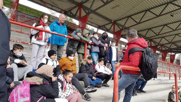 Later, they moved on to the stands. When one of the children asked for a ticket for a Union match, Thomas Maier had to disappoint him: “FC Union has 11,000 subscribers, who of course always get their tickets. 2,200 tickets go to fans of the visiting team and the remaining tickets are raffled off to members of FC Union Berlin. 21,717 people fit into the stadium.” During the rest of the tour, the children learned, among other things, that the stadium was co-built by the Union fans themselves. Inside the stadium, the kids were able to visit a box and take a look at the pitch from above.