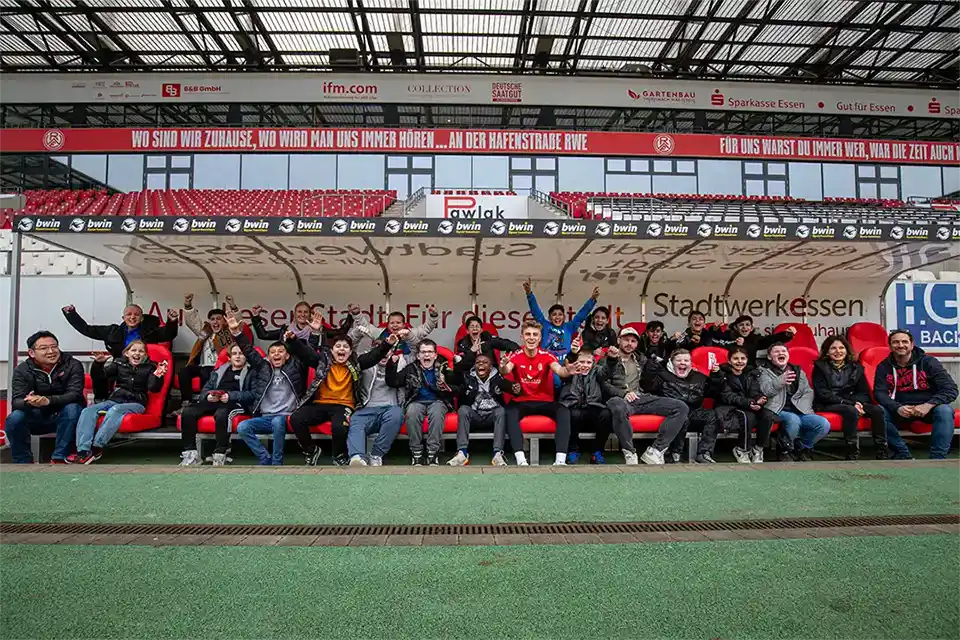 The children were invited to the RWE vs. Dynamo Dresden match by Essener Chancen and watched the game together. In sunny spring weather, the group from FTK Essen attended the top third division match between Rot-Weiß Essen and Dynamo Dresden. The game was sold out and there was a very peaceful yet loud atmosphere in the stadium. Over bratwurst and drinks, the group got to see a 1:1, which was really exciting at the end. The pupils clearly had fun and cheered RWE on energetically. A successful Saturday afternoon for everyone involved!