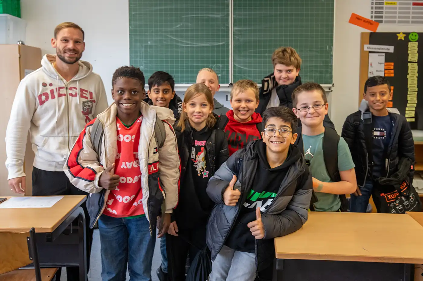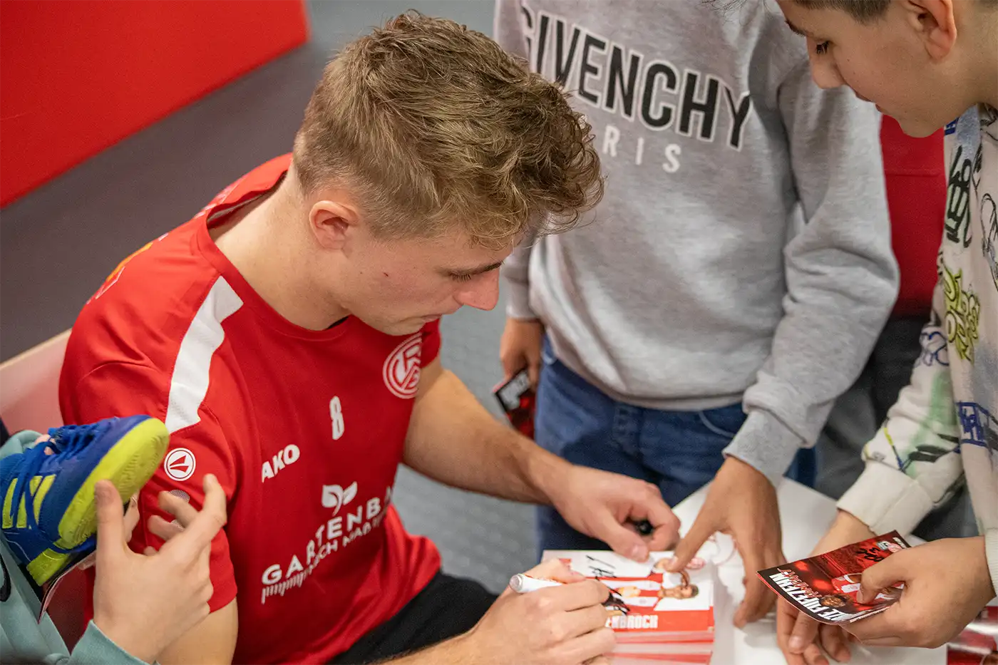 FtK program sponsor and RWE fan favourite Felix Herzenbruch answered questions from the FtK kids from the north