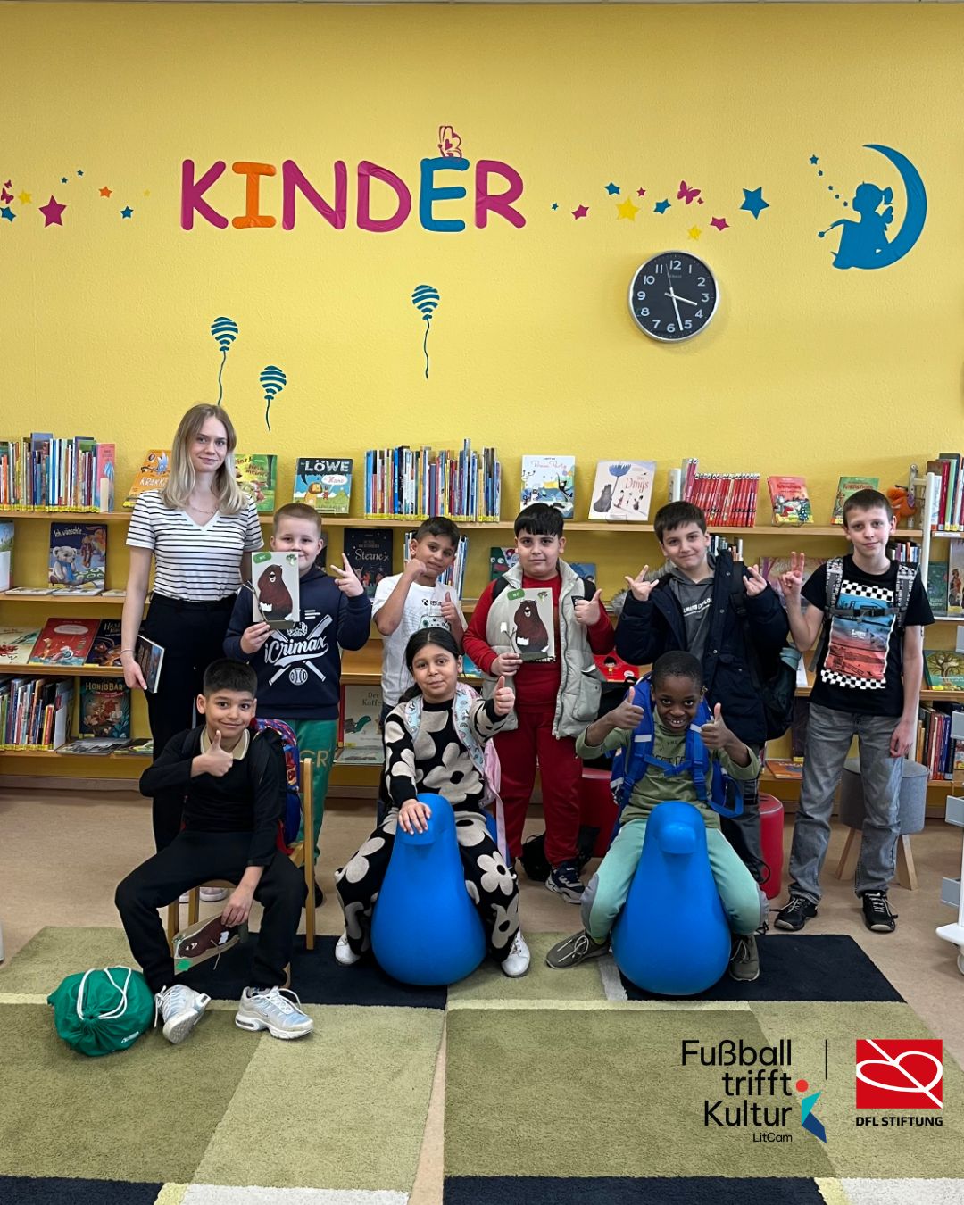 At the beginning of March 2026, the Magdeburg FtK group visited the city library in Florapark in Magdeburg together with their trainer and teacher. There, the children were warmly welcomed by the staff and given a tour of the premises. The pupils learned that you can not only borrow books in a library, but also games, audio books and magazines. They also learned how to behave in a library and what different genres of books are available there. The children were then able to explore the premises on their own. Together, the “Fußball trifft Kultur” group also chose a book that the children would now like to read in their FtK German lessons. The children really enjoyed the excursion and the FtK team hopes that this will motivate them to visit the library in the future and borrow books there. To round off the excursion, all the children were treated to an ice cream.