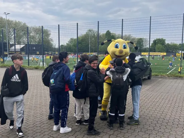As a thank you for their active participation and interest, the children were given a BVB jersey set, which they can proudly wear at the big FtK final tournament in Duisburg next month. Last but not least, BVB’s Emma the Bee even dropped in on the group, which naturally aroused great enthusiasm among the children.