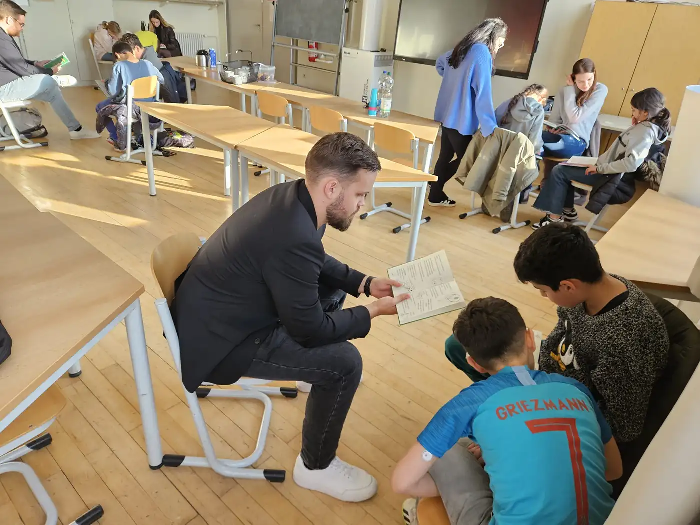 Am 25. April fand im MSV Pressekonferenzraum die Lesung von „Wärme der Wölfe“ von Fritz Fassbinder statt. Die FtK-Gruppe ist gemeinsam mit den öffentlichen Verkehrsmitteln zum Stadion gefahren. Kurz vor 13 Uhr angekommen, hatten die Kinder die Chance im MSV Shop Bilder zu machen und die aufregende Atmosphäre zu genießen. Kurze Zeit später folgte eine spannende Lesung von etwa einer Stunde. Es war eine tolle Gelegenheit mehr über die Hintergründe zu erfahren und Fragen zu stellen.